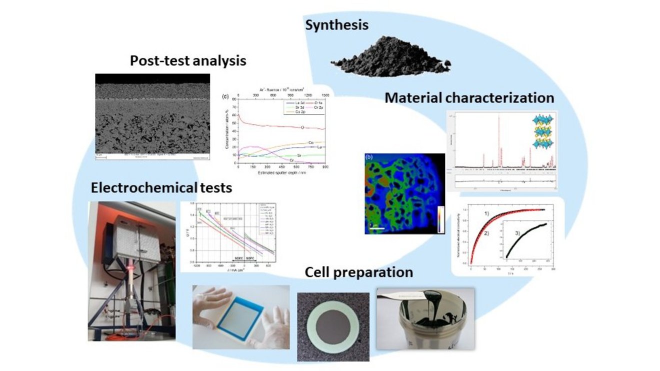 We combine ex-situ and in-situ characterization techniques to gain insights into the fundamental structure-property relationships of novel materials for electrochemical solid oxide cells.