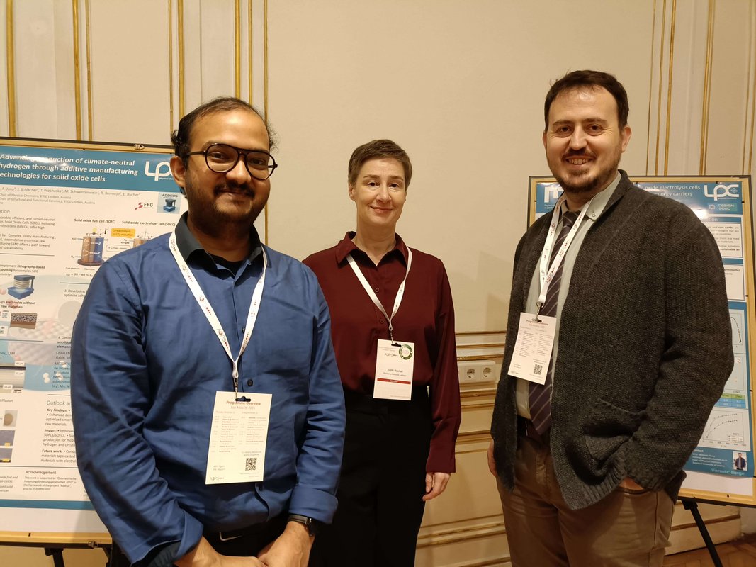 From 13.-14.11.25 Mehmet, Sayan and Edith attended the 20th A3PS Conference ECO-MOBILITY 2025, held at Palais Pálffy in Vienna, Austria. Edith and Mehmet presented contributions from the Design-SOEC project on “High temperature electrolysis for sustainable energy carriers” and “New materials approach to solid oxide electrolysis cells for the production of sustainable energy carriers”, while Sayan introduced the AddEus project on his poster “Advancing production of climate-neutral hydrogen through additive manufacturing technologies for solid oxide cells”.
